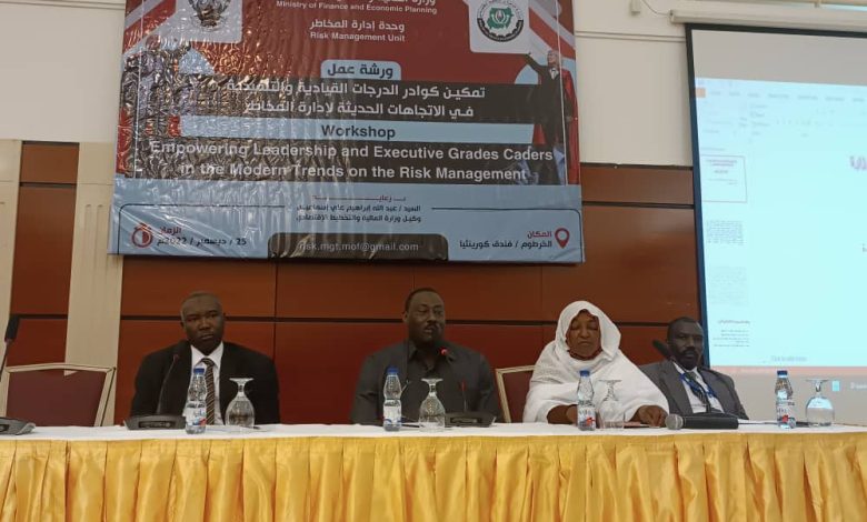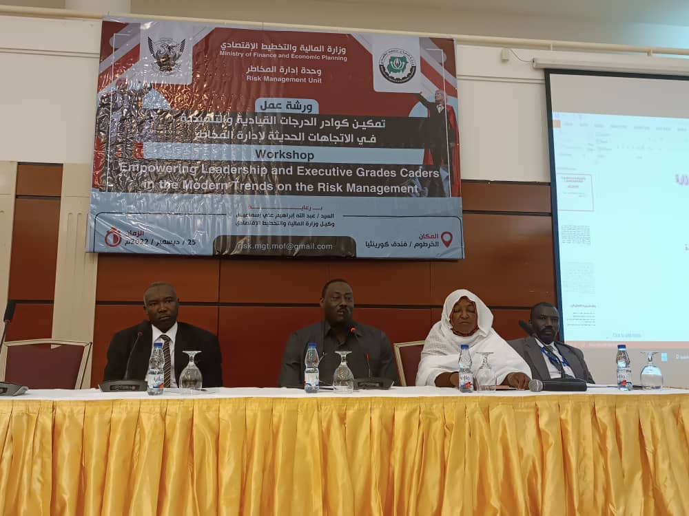 واكد وكيل التخطيط بوزارة المالية بشار محمد الذي افتتح الورشة  بفندق كورنثيا اكظ أهمية الورشة لما لها من كبير الأثر في تحليل المخاطر الاقتصادية والمالية والعمل على تفادي الآثار السالبة والمخاطر التي تاتي من المؤسسات العامة . ومن جانبها أكدت ربيعة إبراهيم مدير وحدة إدارة المخاطر بوزارة المالية علي تقديم السند العلمي والعملي للقيادة العليا بالوزارة واهميةتوضيح المخاطر القائمه والمتوقعة وإعداد سجل المخاطر و اجازته بوضع إستراتيجية المعالجة المرتبطة بالإقتصاد الكلي ومستويات الحكم ، مؤكدة علي ان تكون جزء من اتخاذ القرار وجميع العمليات التنظيمية بهدف تحديد وتحليل وقياس المخاطر ،وشددت علي تحديد العلاج النوعي والكيفي لكل نوع من أنواع المخاطر بما فيها مخاطر التهريب والتي تتمثل في عدم الخضوع للإجراءات الجمركية ومخاطر عدم دفع الرسوم إضافة إلى مخاطر عدم فتح البضائع.